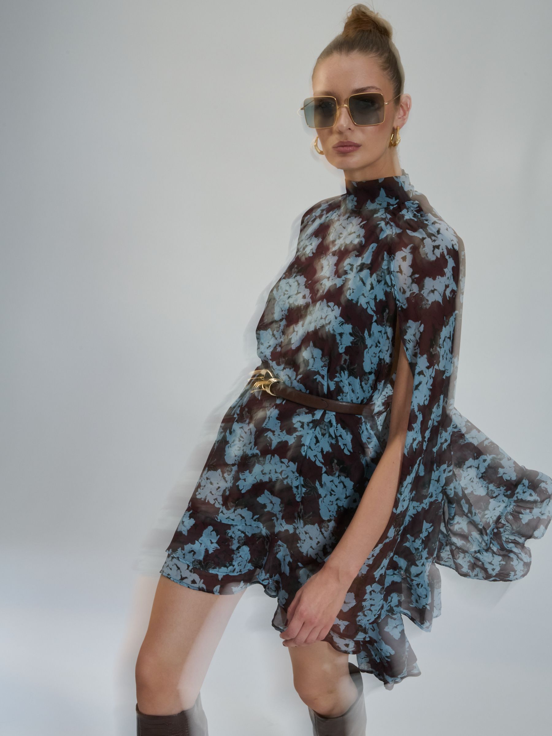 Το PROJECT SOMA Adriana Dress κατασκευάζεται από αέρινη silk touch μουσελίνα. Midi ασύμμετρο φόρεμα με σχέδιο κάπας. Συμπεριλαμβάνεται εσωτερικό εξώπλατο κορμάκι σε μαύρο χρώμα.