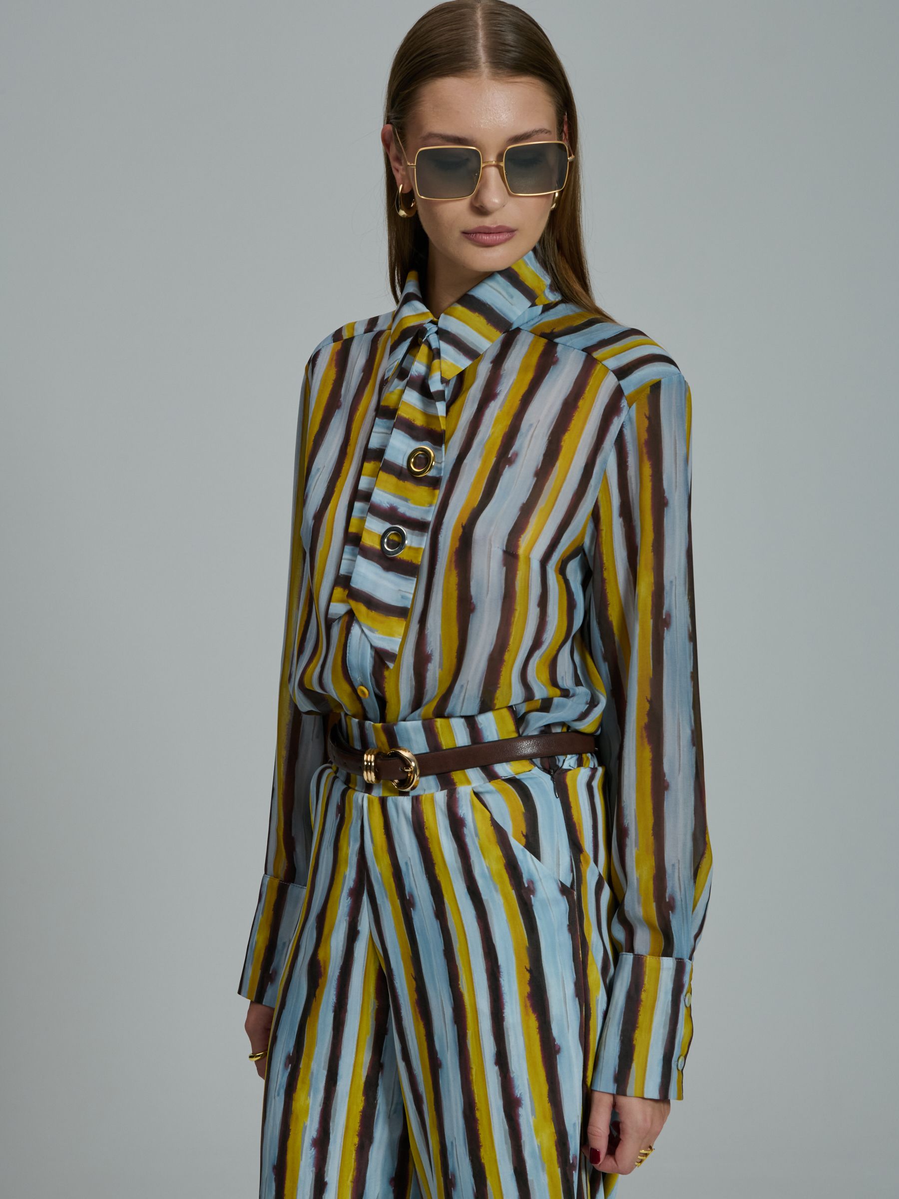 Το PROJECT SOMA Guiliana Ciel Shirt κατασκευάζεται από αέρινη silk touch μουσελίνα. Εμπριμέ πουκάμισο με διακοσμητική γραβάτα.