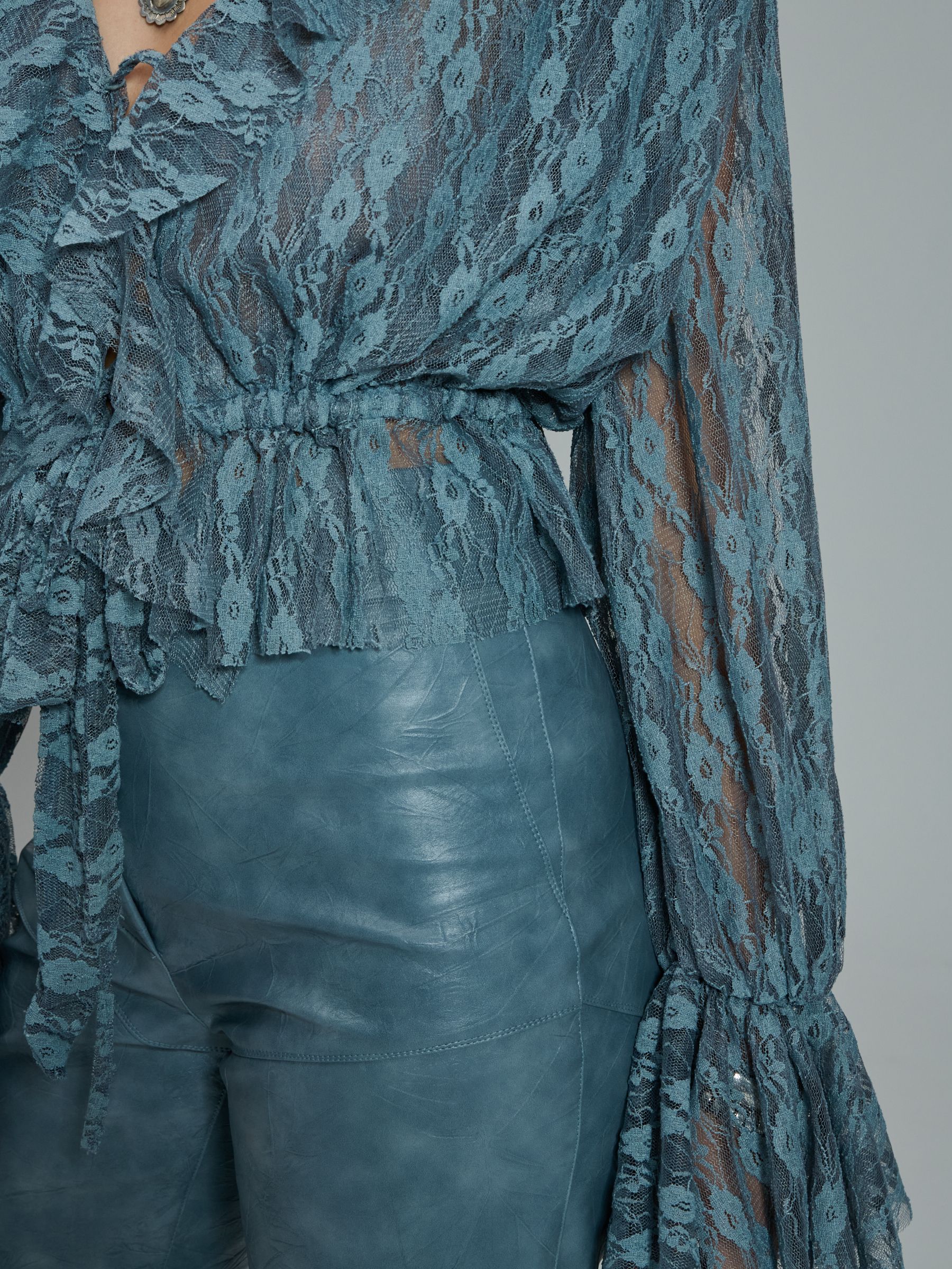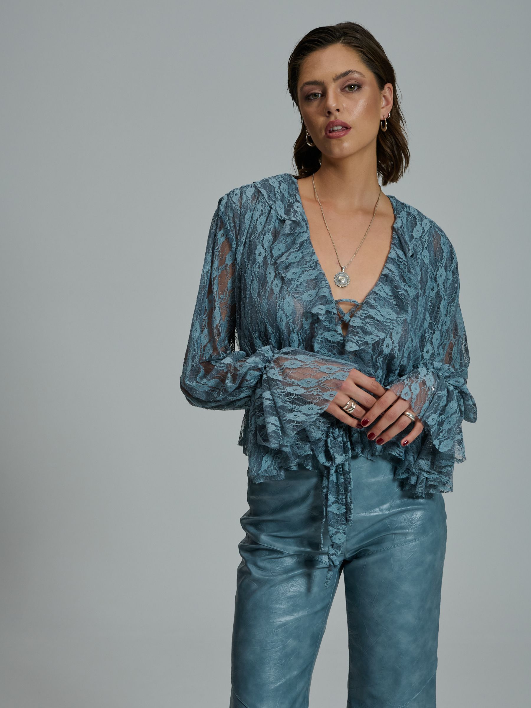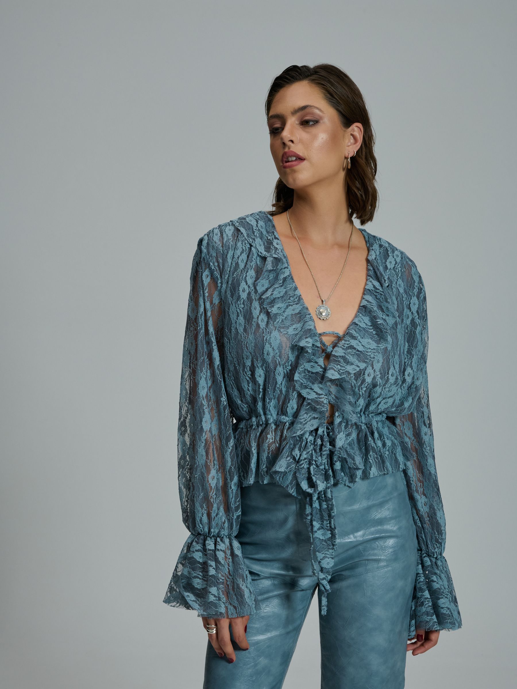 Το PROJECT SOMA Loretta Top κατασκευάζεται από ελαστική δαντέλα. Top με βολάν και σούρες.