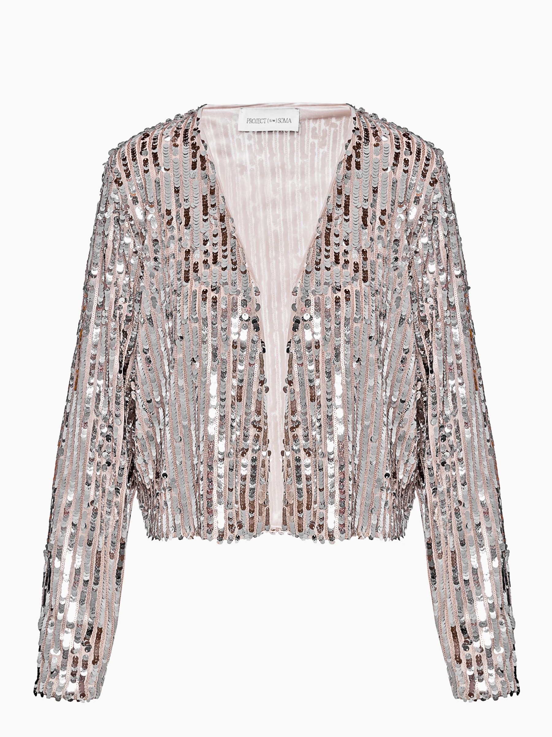 Το Project Soma Adelina Cardigan κατασκευάζεται από ιδιαίτερη παγιέτα σε τόνους του χρυσού. Cropped boxy ζακέτα με επένδυση εσωτερικά.