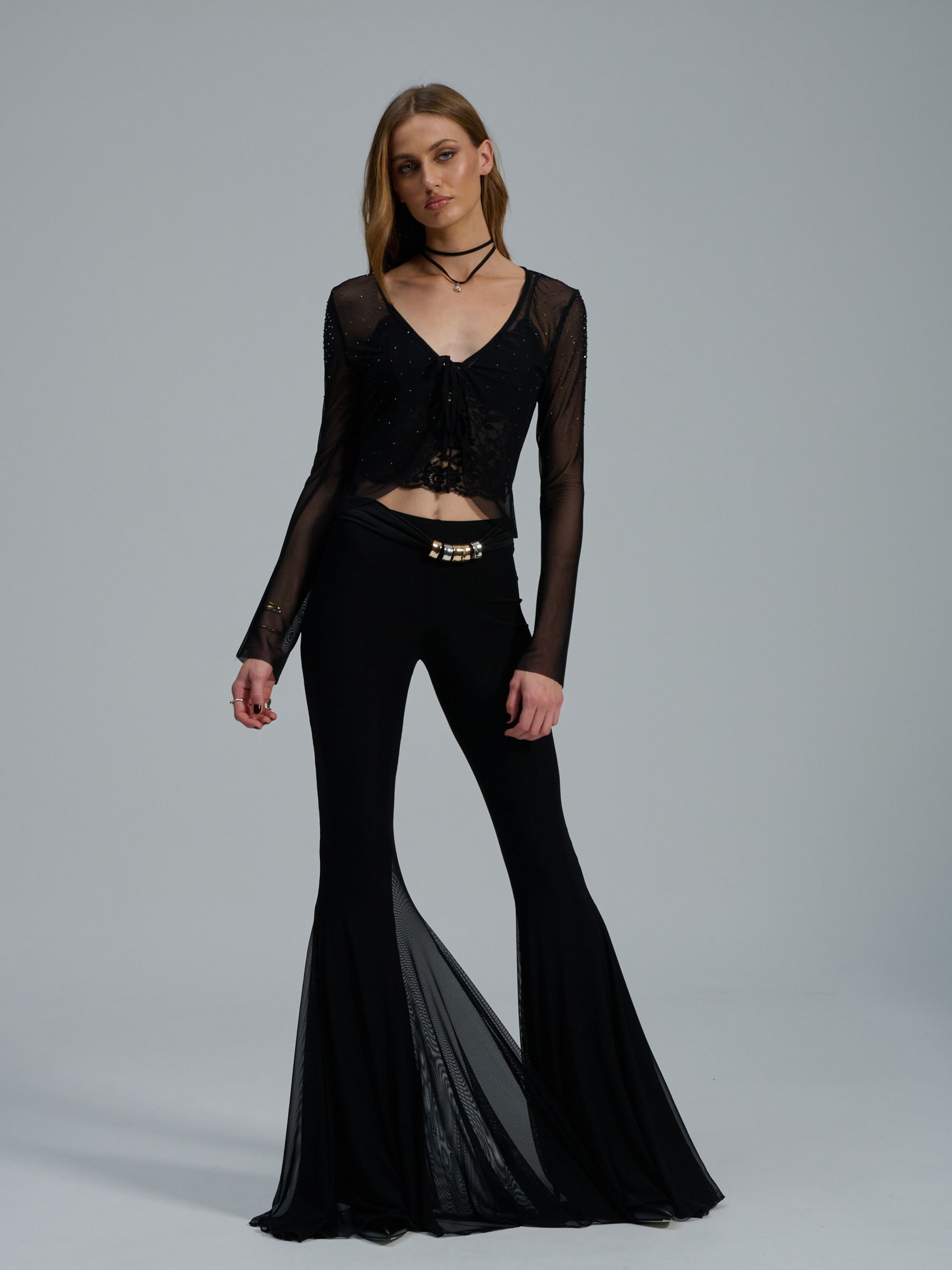 Το PROJECT SOMA Giulia Top κατασκευάζεται από τούλινο ελαστικό ύφασμα με στρασ λεπτομέρεια. Τοπ με δέσιμο μπροστά που μπορεί να φορεθεί σαν ζακετάκι.