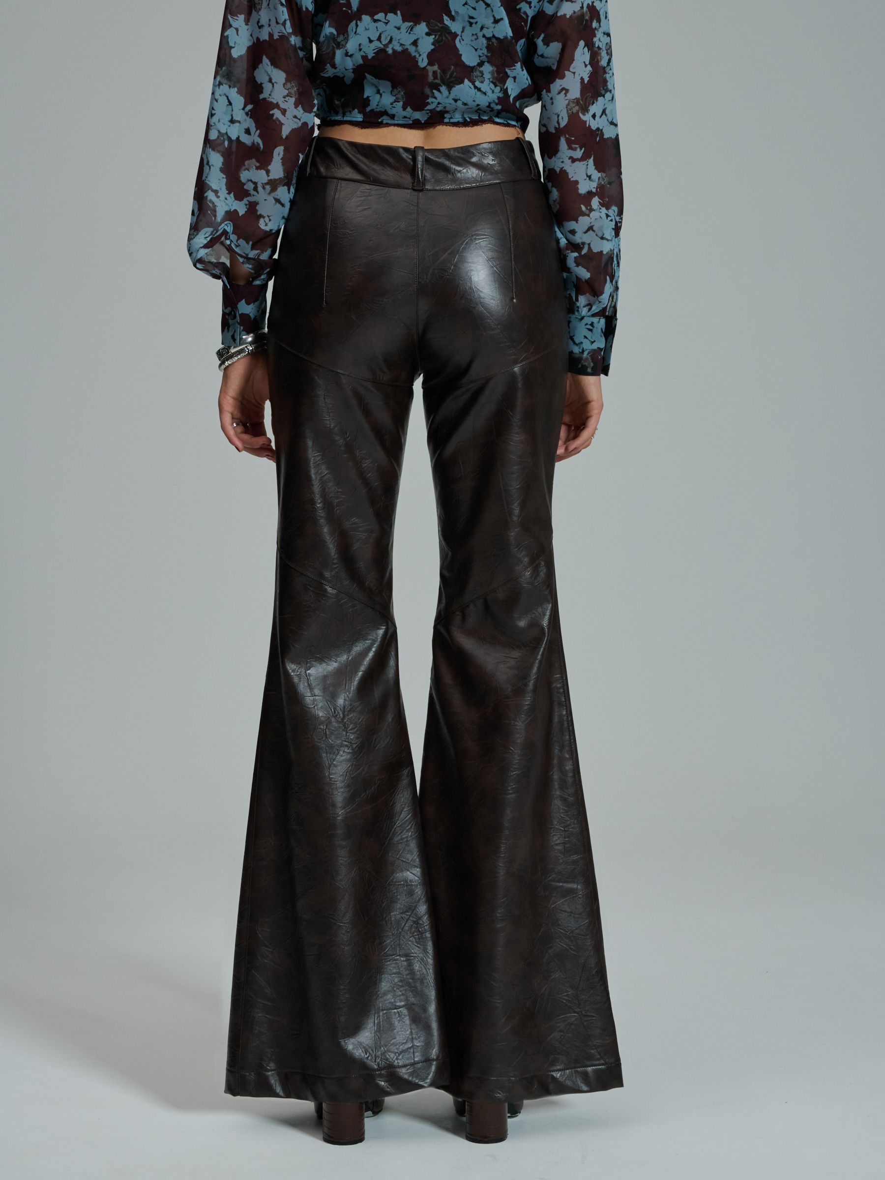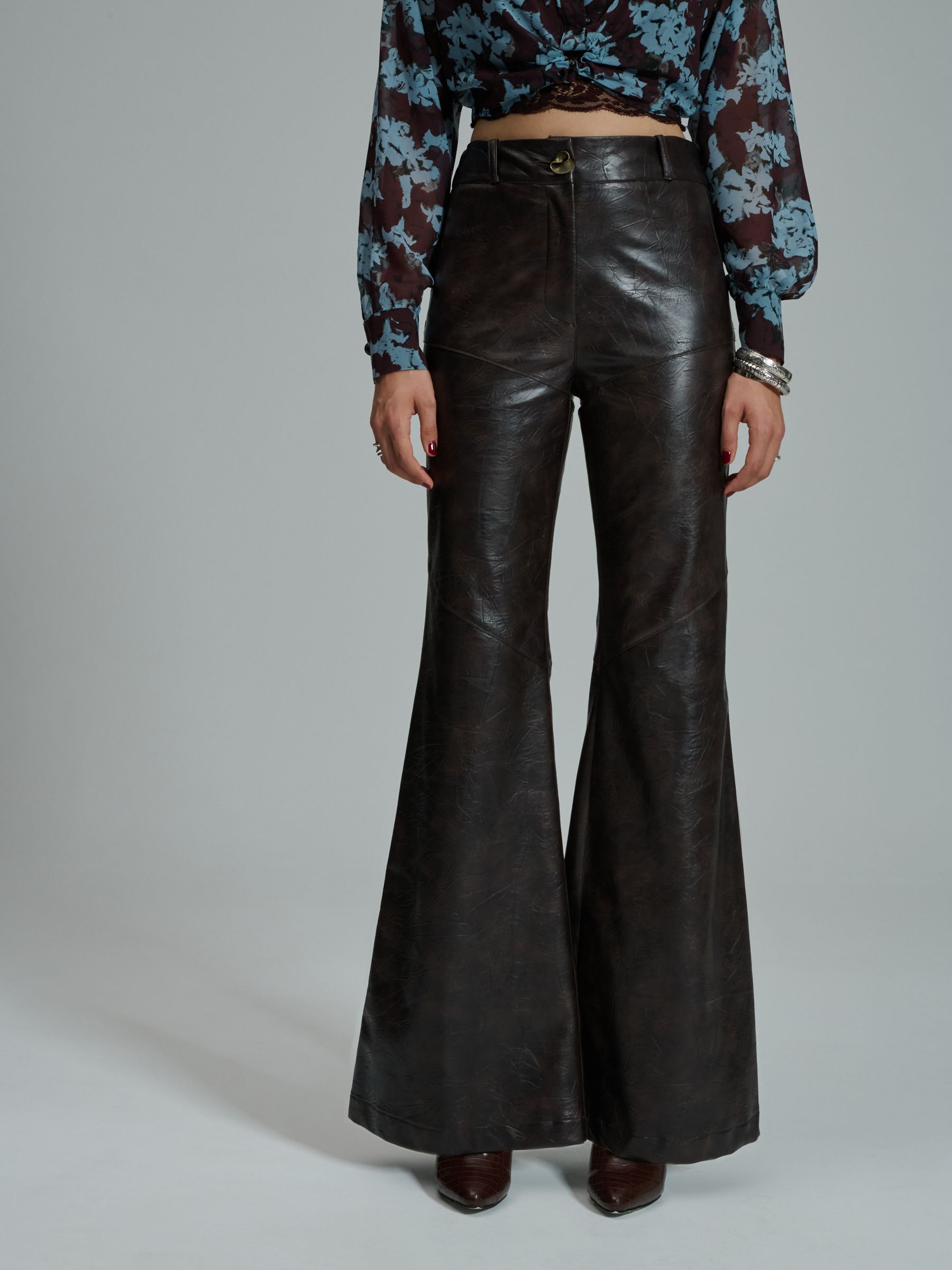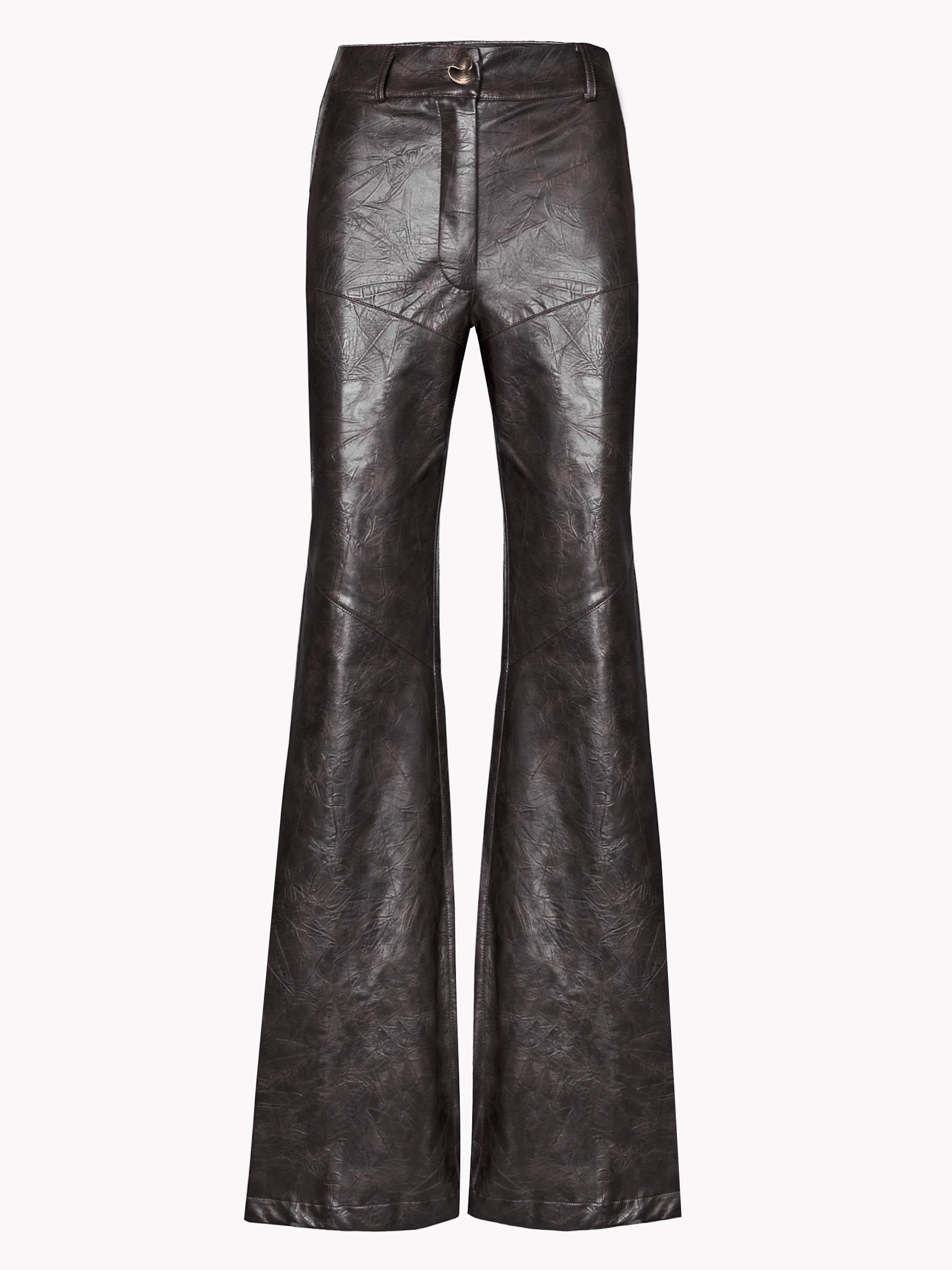 Το PROJECT SOMA Susanna Pants κατασκευάζεται από eco leather ύφασμα με ιδιαίτερη επεξεργασία. Παντελόνι καμπάνα με κοψίματα.
