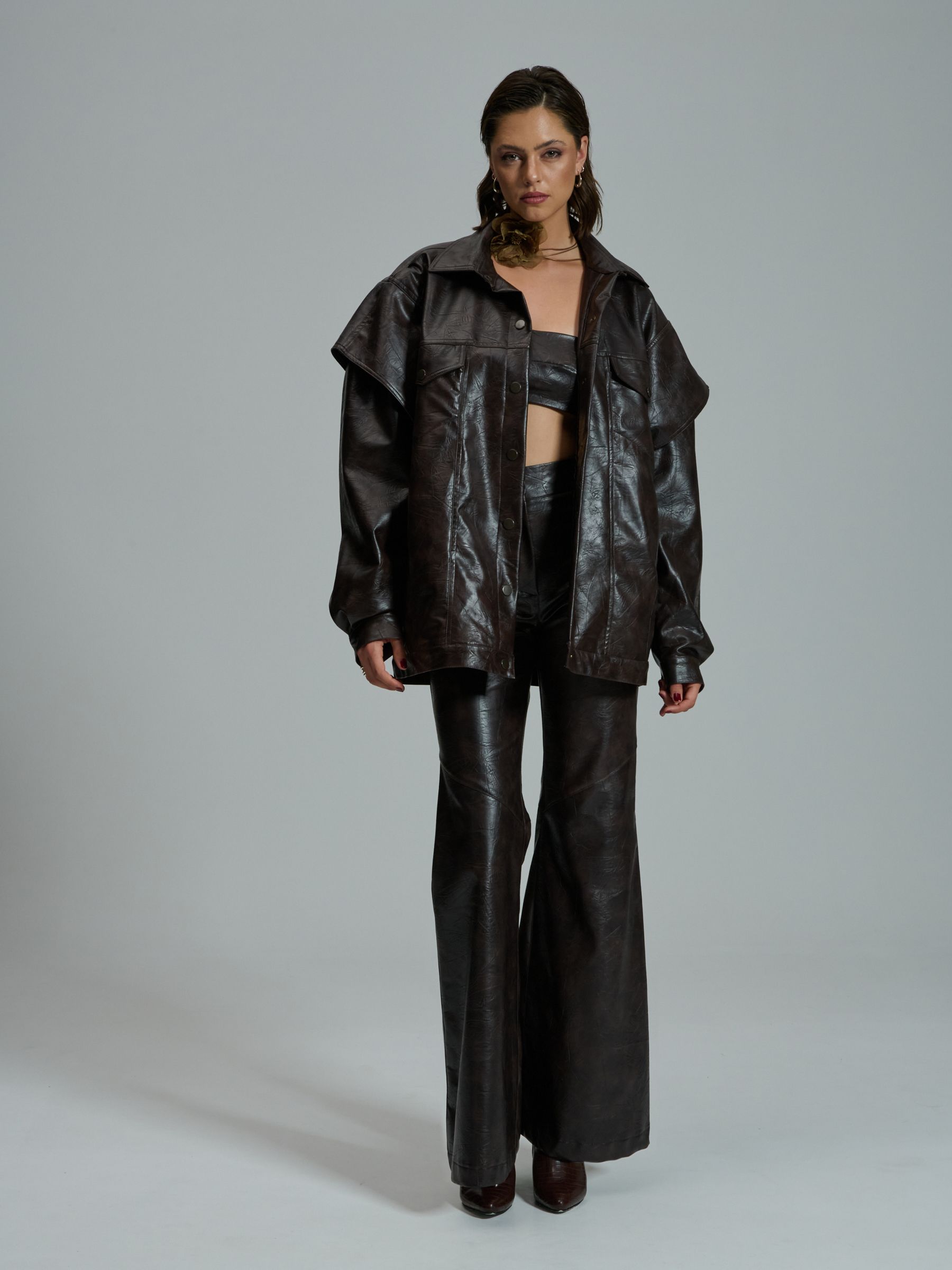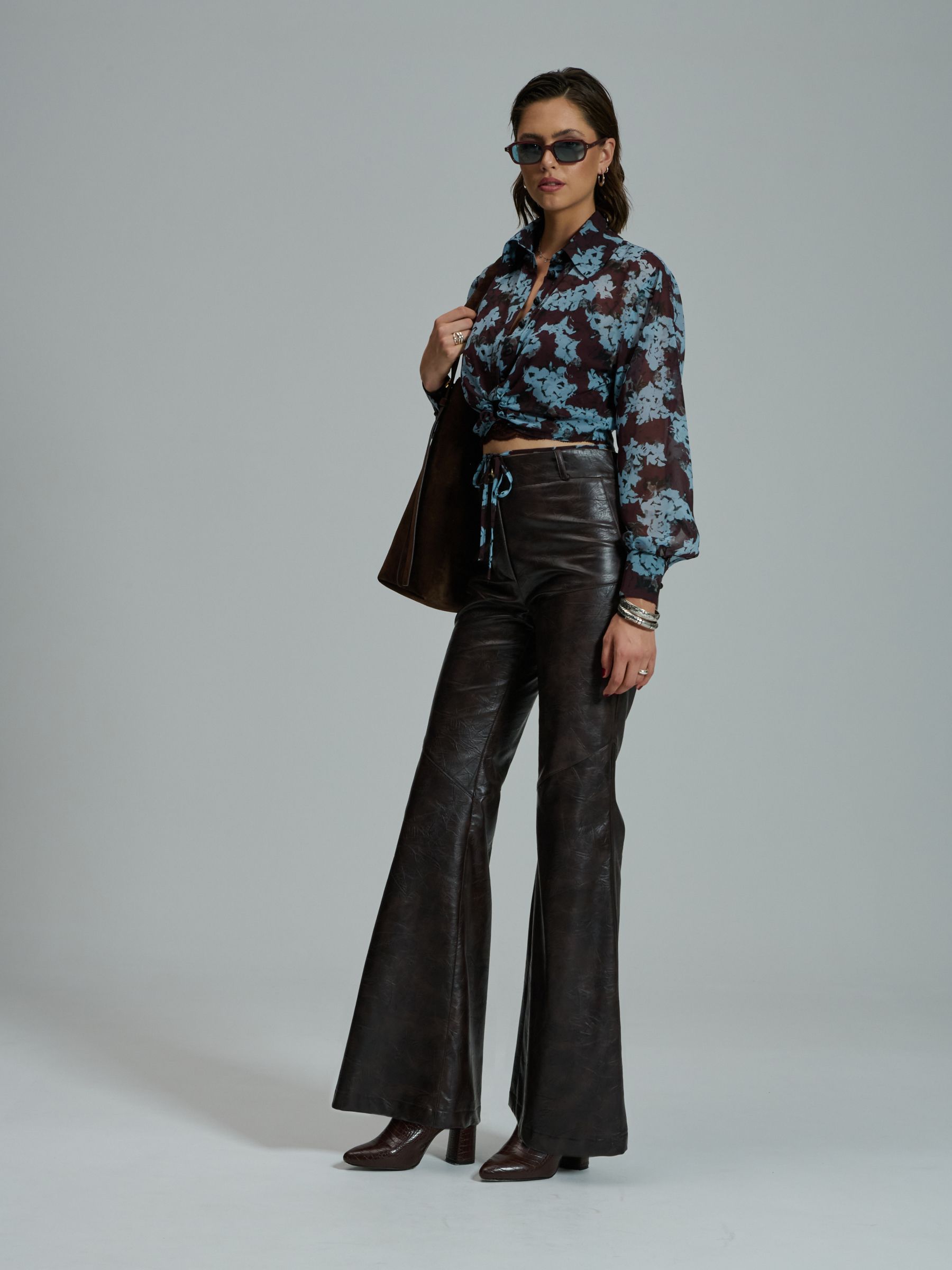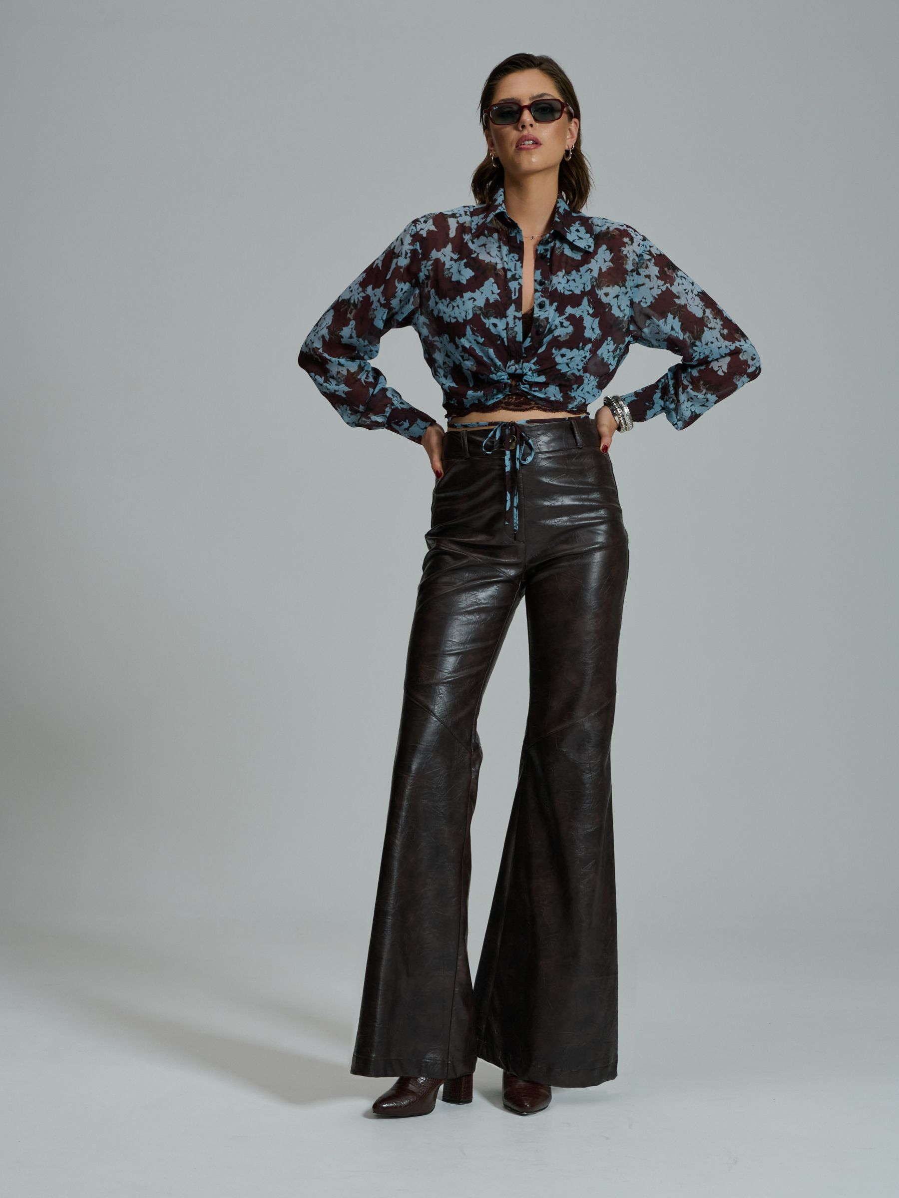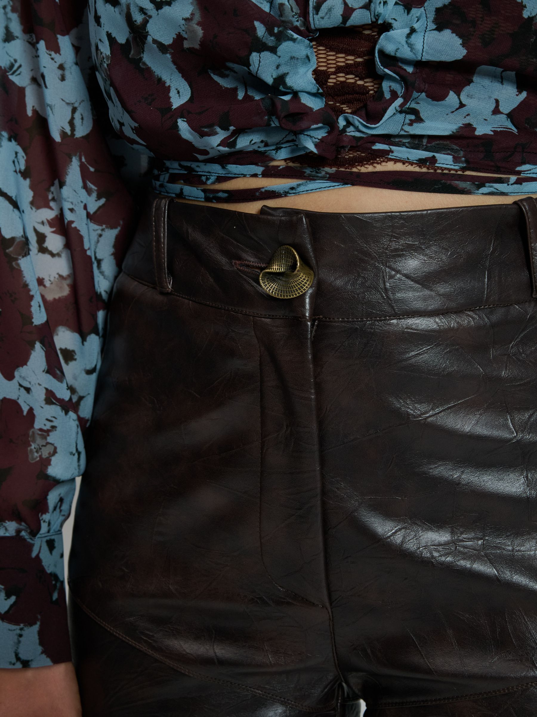 Το PROJECT SOMA Susanna Pants κατασκευάζεται από eco leather ύφασμα με ιδιαίτερη επεξεργασία. Παντελόνι καμπάνα με κοψίματα.