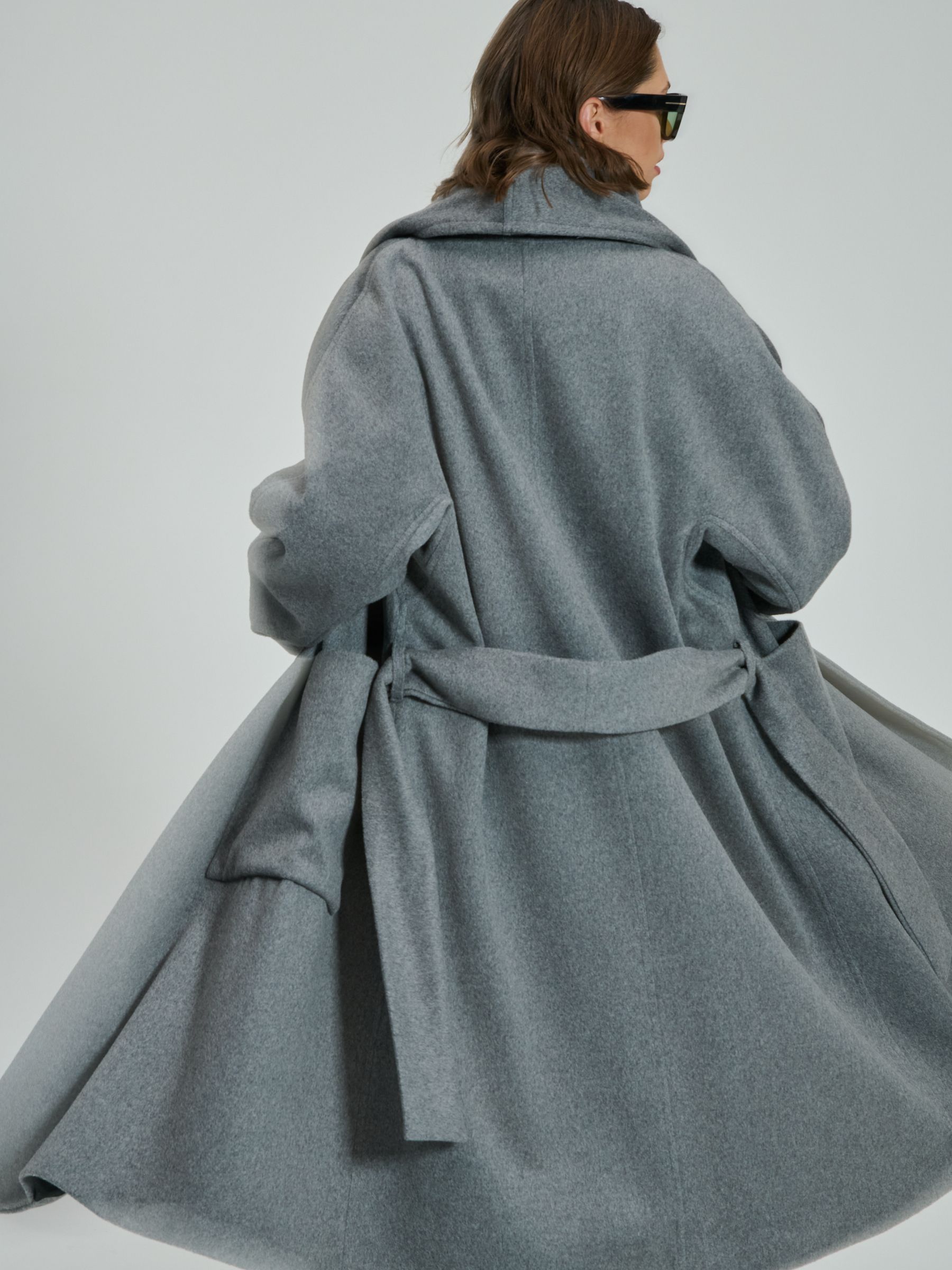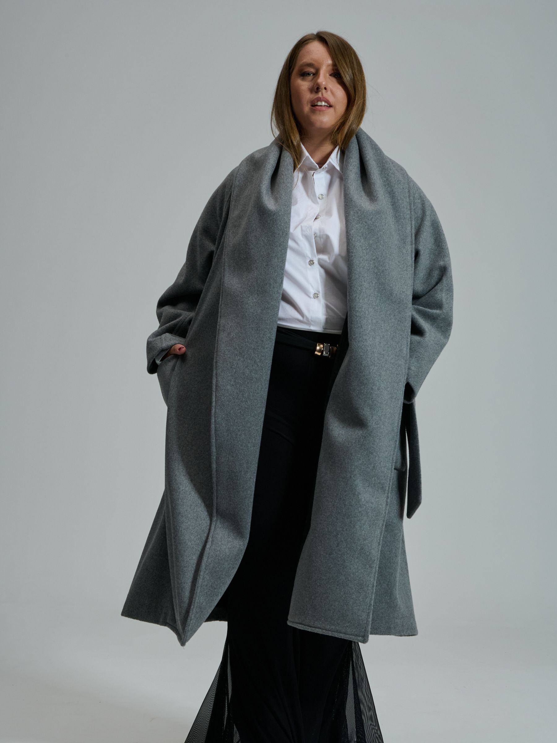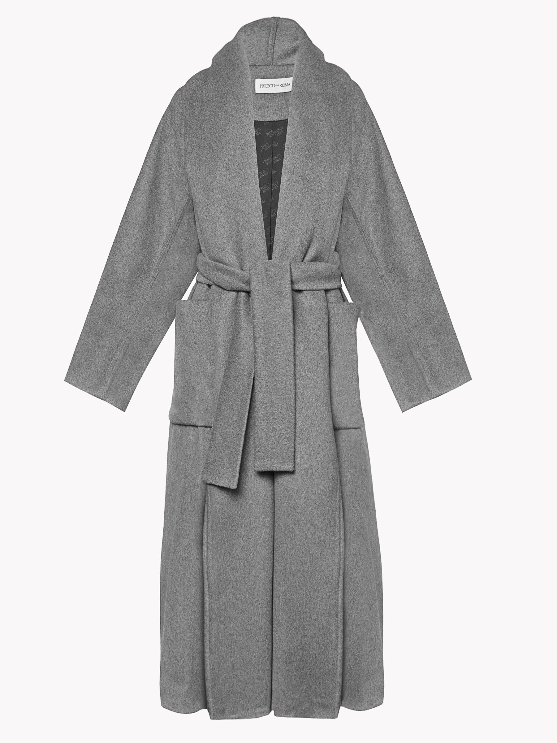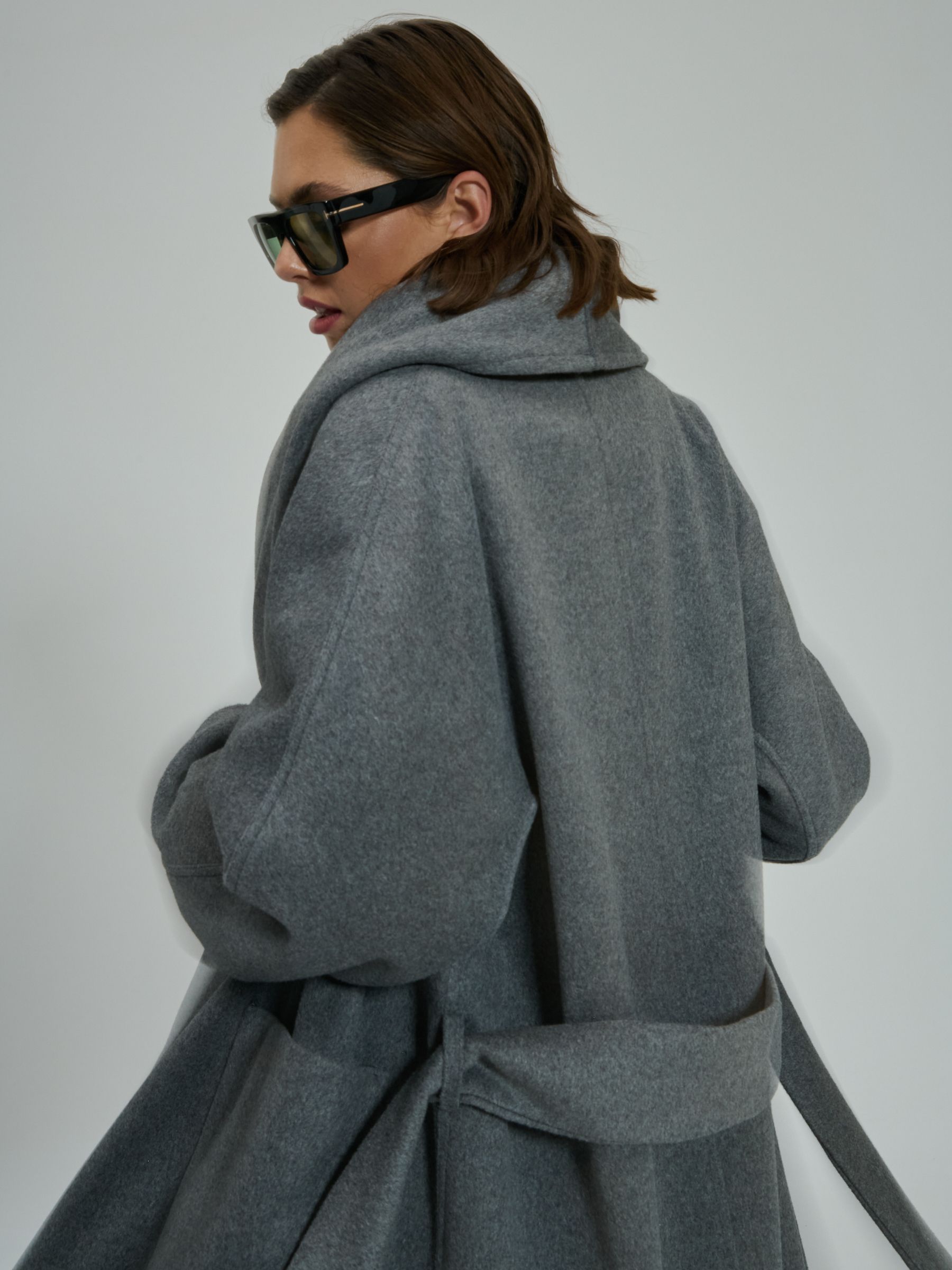 Το PROJECT SOMA Teressa Grey Coat κατασκευάζεται από premium ύφασμα. Oversized maxi παλτό με μονοκόμματο γιακά και ζώνη.